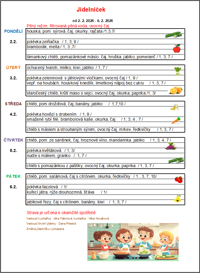 > Jídelníček od 2.2. do 6.2.2026
