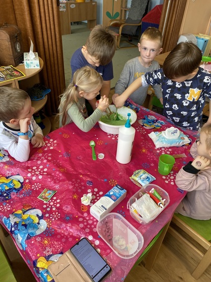 Halloweenský týden jsme začali pohádkou o Jeníčkovi a Mařence. Děti si vyrobily škrabošky na karneval a duchy na výzdobu. Seznámily se s novými strašidelnými písněmi, začarovaly se na strašidla, sochy, zdolaly strašidelné soutěže. Nezapomněli jsme na pokusy - vymírání klovatiny, vyrobení domácího slizu a vytvořily strašidelnou lucerničku. Pozorovaly a tvořily z dýňových semínek.