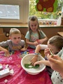 Opatrně jsme navázaly na svátek dušiček, kdy děti zavzpomínaly na své blízké při povídání s kamínkem. Prožitkově jsme se vcítili do duchů a zatancovali si na píseň "Ghost choir". Děti spolupracovaly ve skupinkách při zdobení duchů.