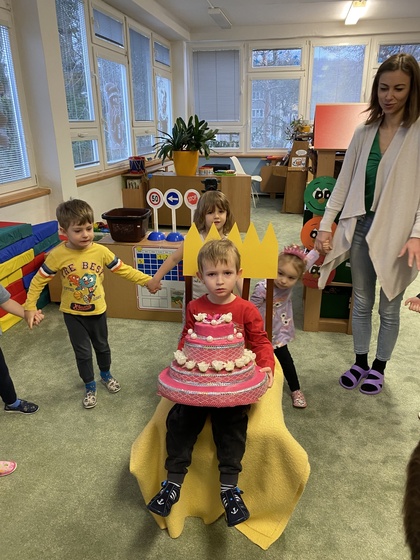 V týdnu jsme se zaměřili na poznávání planet a pochopení Sluneční soustavy. V tělocvičně jsme si zacvičili a hlavně předvedli, jak to ve vesmíru vypadá. Také jsme si ukázali, jak se točí Měsíc okolo Země a zároveň okolo Slunce. Vesmír jsme si užili, děti vyráběly UFA, malovaly mimozemšťany, otiskávaly balónky, tvořily společnou prací Sluneční soustavu vystřihováním planet a lepením na osy.