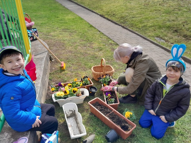 Ve čtvrtek 21. 3. 2024 jsme se sešli všichni z naší školky na zahrádce, kde jsme v květinové chýši našli spící vílu. Pomocí jarních básniček se nám ji podařilo probudit ze zimního spánku. S vílou jsme si zazpívali, zatancovali, a co je nejdůležitější, podařilo se nám společně odemknout jarní bránu a jaro konečně zavítalo k nám na zahrádku.