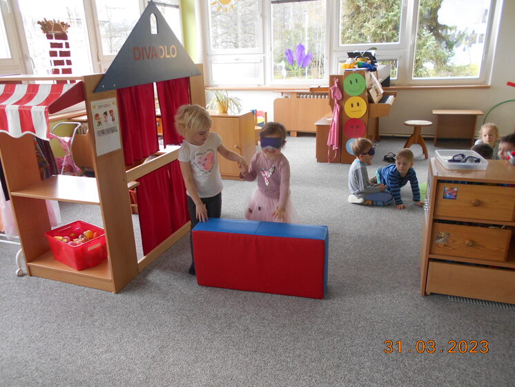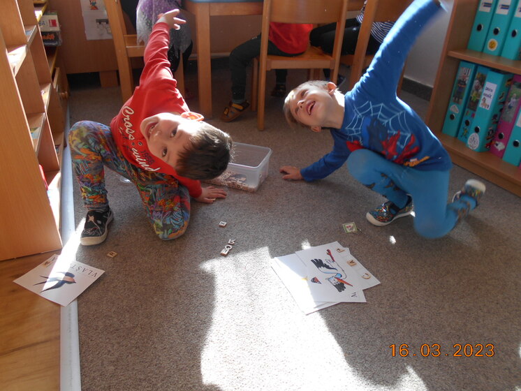 V březnu jsme vyrobili Moranu a pak jsme ji hodili do potoka. Tím jsme se konečně rozloučili se zimou a přivítali jaro. Kvítková víla nám odemkla zahrádku a my už jen čekáme na sluníčko, abychom tam mohli trávit více času. Měsíc jsme zakončili povídáním o knížkách a knihovnách. Děti si knížky vyráběly, ilustrovaly a přinesly nám ukázat i nejoblíbenější knížku z domova. Seznámili jsme se také s Braillovým písmem a povídali jsme si o tom, jak náročná je pro nevidomé četba i orientace v prostoru.